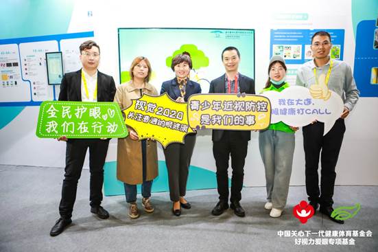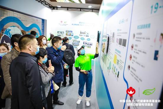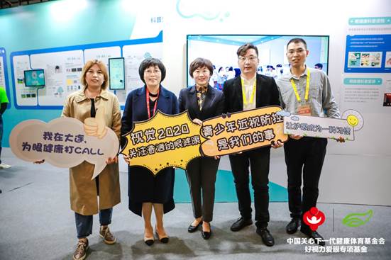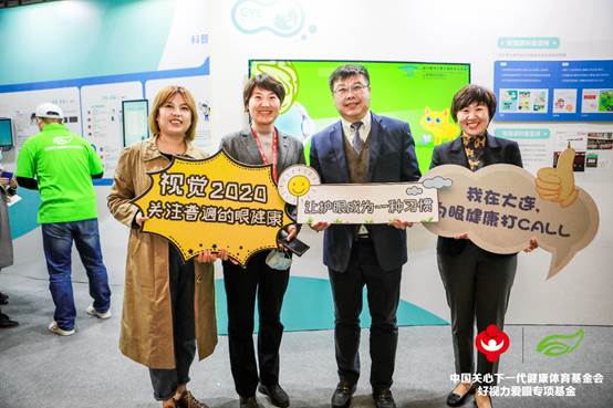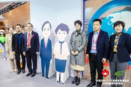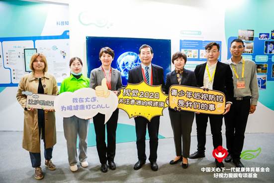 教育部體衛(wèi)藝司副處長(zhǎng)樊澤民(左四)蒞臨展位公益打卡。和好視力愛眼專項(xiàng)基金一起呼吁大家關(guān)注眼健康科普公益活動(dòng),青少年近視防控是我們的事兒!