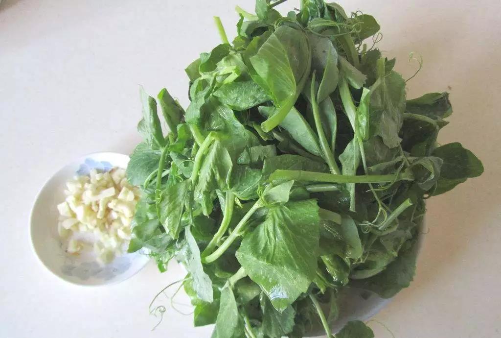 配料:豌豆尖300g、蒜4瓣、鹽適量、油適量
