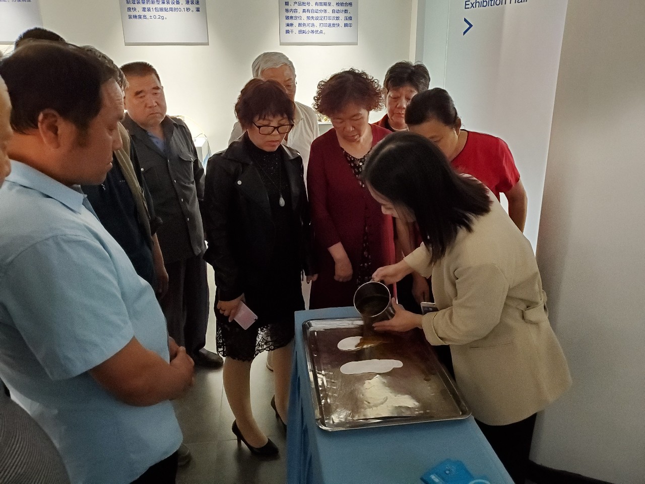 隨后講解員還為大家展示了最原始的眼貼生產(chǎn)過程,大家看了都躍躍欲試~紛紛體驗起來。